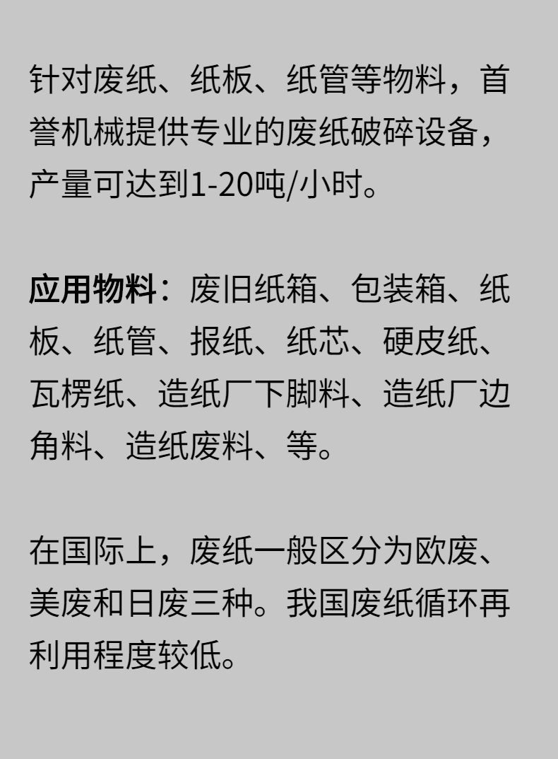 發(fā)布者:首譽 關鍵詞:廢紙破碎設備,廢紙撕碎機,紙管破碎機 瀏覽量: