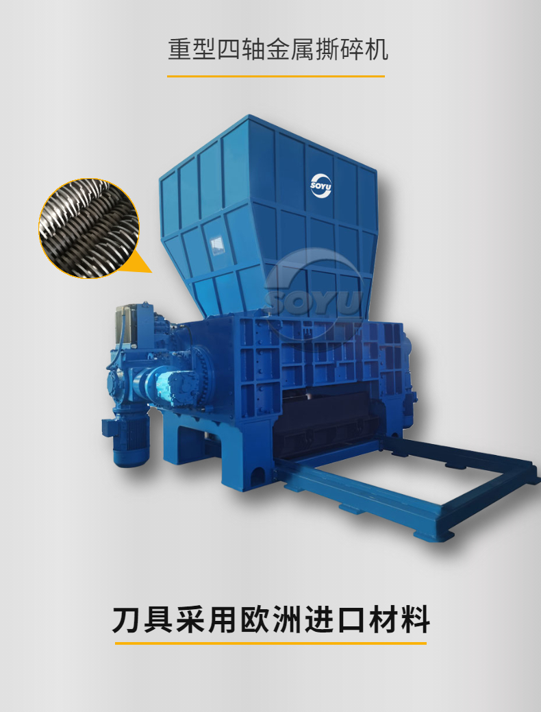 本機采用行星齒輪減速機驅(qū)動,刀片采用高強度合金鋼制成,有較強的耐磨性和較高的強度等特點,軸之間差速運轉(zhuǎn),有撕扯、擠壓、咬合等功能。電氣部分采用西門子電氣元件編程控制,具有自動檢測過載保護等功能。專為破碎各種鋁型材及輕薄金屬物料設(shè)計,適合各種大體積,難破碎的壓塊的或散件的鋁型材物料細化,具有出料均勻、大小可控等優(yōu)點,適合撕碎的物料有:打包鋁、鋁泊、鋁材、鋁條、輕薄鋼料、輕薄鐵料等各種廢金屬物料。效率高、低轉(zhuǎn)速、大轉(zhuǎn)矩、低噪音
