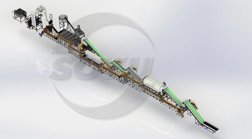 HDPE瓶回收線主要由單軸粉碎機(jī)/塑料破碎機(jī)、螺旋裝載機(jī)、清洗機(jī)、標(biāo)簽去除機(jī)、立式脫水機(jī)、干燥機(jī)等設(shè)備組成。它適用于處理PET瓶。材料將通過(guò)去除標(biāo)簽、破碎、清洗、脫水和干燥進(jìn)行處理。最終輸出的濕度可以在2%以內(nèi)。整個(gè)生產(chǎn)線操作方便,效率高,能耗低。