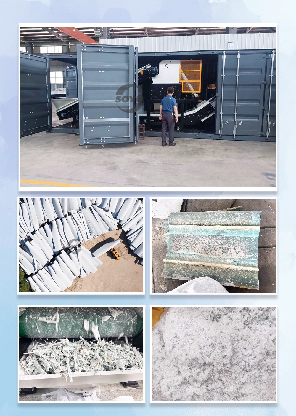 移動集裝箱式退役風電葉片(玻璃鋼制品)資源化處置系統(tǒng)
