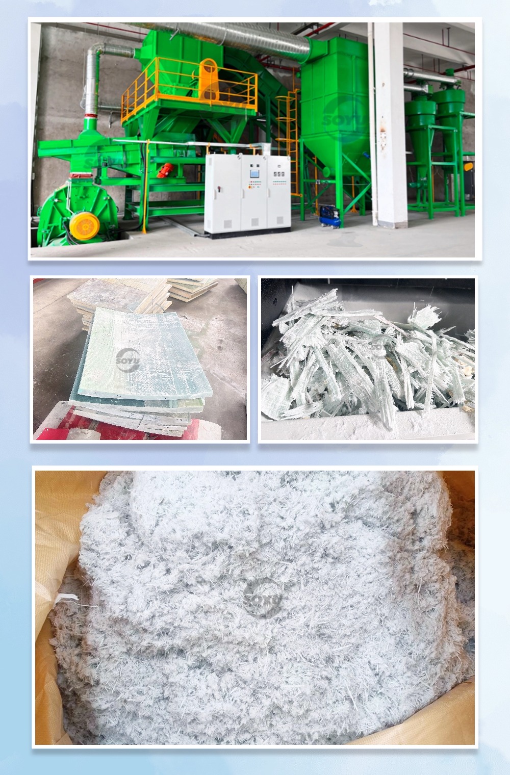 首譽的退役風電葉片(玻璃鋼制品)資源化處置系統(tǒng)采用先進的處理技術:集撕碎、破碎、分選、資源化利用等功能于一體,能夠實現(xiàn)對退役風電葉片的高效、環(huán)?;厥铡D軌驅⑼艘鄣娘L電葉片有效處理成粉末,便于后續(xù)的回收利用或安全填埋。
